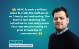 NEPO’s Regional Procurement Apprenticeship Programme is designed to attract, develop and support talented individuals from a wide range of backgrounds, helping them build successful careers in public sector procurement.
